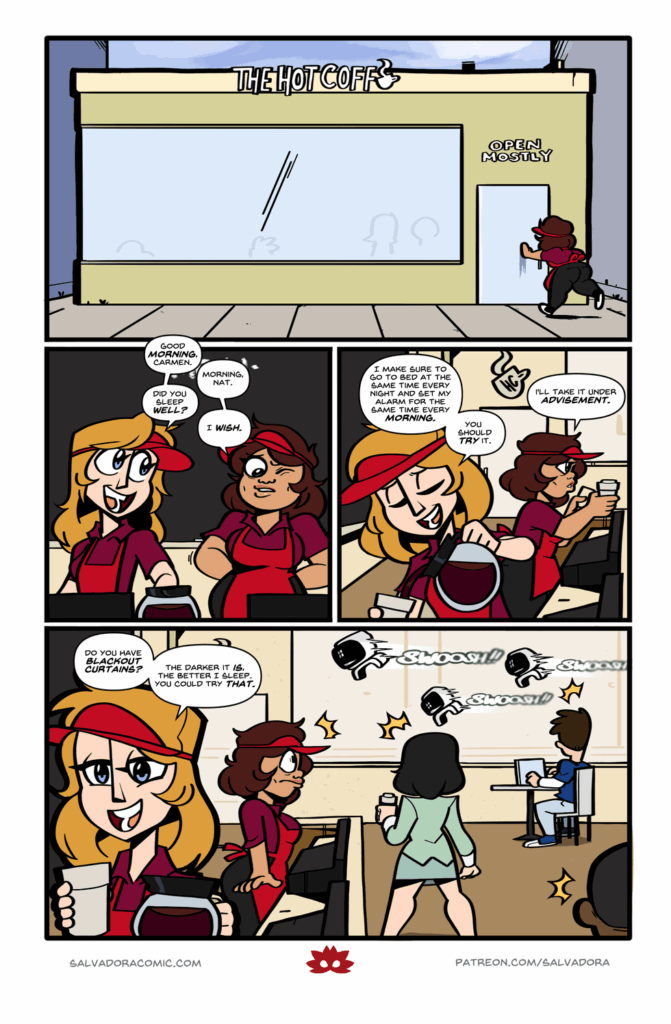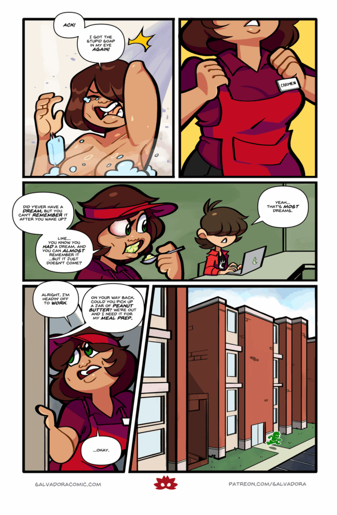 Emma eats healthy, cost-effective meals. Carmen does not. Check out this month’s new pinup only on Patreon! Here’s a sneak peek: Support Salvadora on Patreon to see the full pic! Buy our merch!